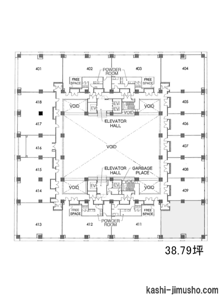| 【基準階】 | 414.85坪 | 【エントランス】 | 全日開放(制限有) | |