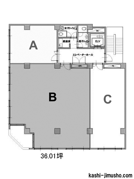 日本橋兜町エリアの角地に位置する採光性良好な賃貸オフィスビルです。八重洲KHビルは、東京都中央区日本橋兜町に位置します。ビルは角地にあり、アクセスが便利です。最寄りの茅場町駅からは徒歩約5分、日本橋駅からも徒歩圏内に位置しており、ビジネス街への移動に非常に便利な立地条件を備えています。このビルは地上7階建てで、鉄骨鉄筋コンクリート造りが特徴であり、新耐震基準に適合しています。外観は落ち着いたベージュのタイル張りで、都市の景観に溶け込んでいます。ビル内の設備は、現代のオフィスニーズに応えるよう設計されており、OAフロアでの作業が快適に行えるようになっています。また、男女別のトイレ設備や、安全性を考慮した機械警備システムも完備しており、テナントの安心と利便性を重視しています。前面道路は比較的広く、大型車両の搬出入にも対応可能で、物流が多い企業にも適している点が魅力の一つです。八重洲KHビルは、その立地と設備により、多様なビジネスの要求に応える賃貸オフィススペースとして評価されています。貸室内は、個別空調・OAフロアが完備されています。トイレは室外で男女別になっています。