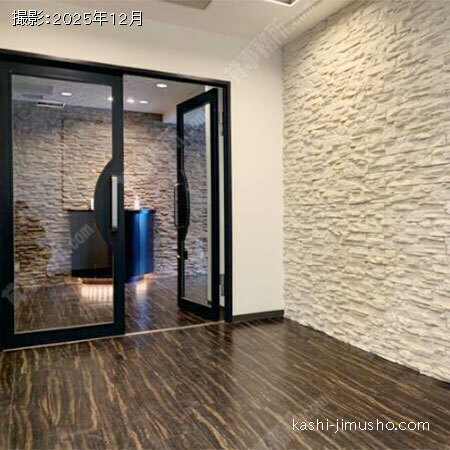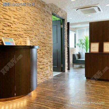 御影石張りの高級感ある貸事務所です。高級感漂うエントランスが、来訪者をお迎えします。機械警備システム対応でセキュリティ安心です。