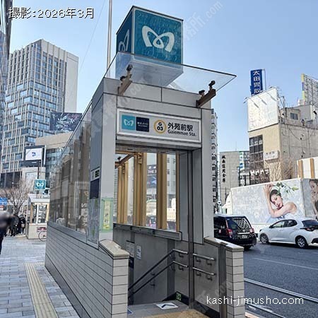 複数路線が利用可能な便利な物件。大通りに面した分かりやすい立地。落ち着いた色合いで清潔感のあるビル。